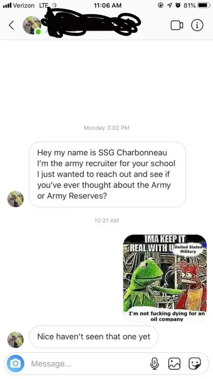 You chose to join the military. The entire structure is made of those who choose to participate in an organization that actively kills and maims, and inactively maintains the capitalist system that is fueling the climate crisis.